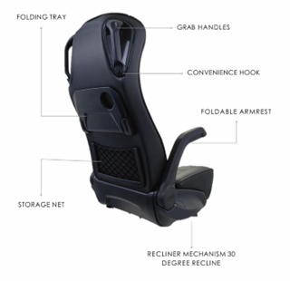 Passengers will appreciate the ergonomic high-back design, premium leatherette upholstery with padded cushioning, and removable snap-in cushion for easy cleaning. With a 30° recline mechanism and foldable armrests on both sides, this seat adapts to passenger comfort needs on every trip.